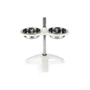 Standaard met 2 rvs hondenvoerbakken Orino wit