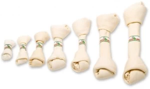 Farm Food Rawhide Dental Bone Rund – Hondensnacks – L direct bestellen in onze webshop! Wat is Farm Food Rawhide? Farm Food Rawhide is gedroogd onderhuids bindweefsel (de tweede, stevige en taaie, laag) van de huid van runderen. De witte kauwkluiven komen uit Europa en zijn gemaakt van de huiden van vrije uitloop runderen die daar voor de vleesproductie worden gehouden. Farm Food Rawhide kauwkluiven zijn stevig, hard en volledig verteerbaar. Natuurlijke gebitsverzorging met Farm Food Rawhide Een groot aantal honden heeft gebitsproblemen door het niet verwijderen van tandplak. Deze tandplak wordt omgezet in tandsteen en dit kan ernstige gevolgen hebben. Naast periodieke controle is een structurele oplossing nodig om problemen te voorkomen. Het aanbieden van een kauwkluif aan je hond kan problemen voorkomen. Omdat je hond intensief moet kauwen helpt Farm Food Rawhide bij het voorkomen en bestrijden van overgewicht. Ook wordt er tijdens het kauwen, in de hersenen, endorfine aangemaakt, deze endorfines geven een gevoel van rust waardoor uw hond zich ontspant. Natuurlijk kauw gedrag van honden Honden hebben van nature een grote behoefte om ergens op te kauwen. Dit doen ze omdat zij alleen op deze manier hun tanden en kiezen op een natuurlijke wijze schoon kunnen houden. In de natuur kauwen wolven en andere hond-achtigen, na een maaltijd, onder andere op de huid en botten van hun prooi. Dit kauwen op zacht, taai materiaal zorgt voor schone tanden en kiezen en daardoor voor gezond tandvlees. Door de inwerking van speeksel komt tijdens het kauwen natuurlijke collageeneiwit vrij. Dit collageen heeft de eigenschap op tandplak op te lossen. Door de schurende werking tijdens het kauwen, vindt er een grondige en zichtbare reiniging van het hondengebit plaats. Productie Het productiebedrijf waar de kluiven geproduceerd worden is een onderdeel van een grote slachterij, de huiden worden daarom direct na het slachten machinaal gespleten. De buitenste, onverteerbare, lederhuid wordt daarbij verwijderd voor de leerproductie. De binnenste lagen, verteerbare, onderhuids-bindweefsel worden gewassen en op de gewenste maat in stukken gesneden. Na handmatig in de verschillende vormen te zijn gevouwen, worden de witte kauwkluiven enkele dagen in een oven gedroogd. Een zeer belangrijk aspect van onze producten is dat er, door deze snelle verwerking, tijdens de gehele productie geen schadelijke stoffen worden gebruikt. Daardoor wordt er een schoon, zuiver en veilig product garanderen. Farm Food Rawhide wordt in Europa onder HACCP richtlijnen vervaardigd. . Alle Farm Food voor uw Hond uit voorraad leverbaar!