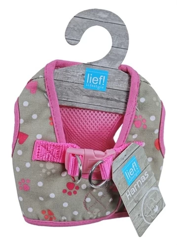 Het Girls Hondenharnas van lief! is een eenvoudig harnas met vrolijke opdruk van hartjes en stippen. U kunt de lijn vastmaken aan de twee D-ringen die bevestigd zijn aan het tuig. Hierdoor heeft u betere controle over uw hond tijdens het wandelen.