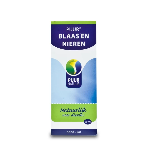 Puur Blaas En Nieren Hond&Kat 50 ml Dosering Tenzij arts of therapeut anders voorschrijft, 1-3 keer daags Hond > 25 kg 15 druppels Hond 10 – 25 kg 10 druppels Hond < 10 kg 5 druppels Kat 3 druppels 1 ml = 20 druppels Goed schudden voor gebruik. Indien het in de praktijk lastig is om dit product meerdere malen per dag toe te dienen, volstaat 1 keer per dag of 1 keer per 2 dagen. Geef dan de maximale dosering van één dag. Ook dan is dit product effectief inzetbaar maar kan reactie iets langer uitblijven. Bij verbetering kan overgaan worden op een onderhoudsdosering. Dit is meestal de helft van de aangegeven dosering op de verpakking. Kijk bij het doseren van dit product goed naar de reactie van het dier. In het begin kan een hogere dosering nodig zijn, dit product kan veilig in een dubbele dosering gegeven worden. Verlaag de dosering bij verbetering geleidelijk tot een zo laag mogelijke dosering. Sommige dieren kunnen bij de start van de behandeling een kortdurende verergering krijgen of anderszins heftig reageren. Bij ernstige toename dosering halveren of tijdelijk stoppen en daarna weer rustig opbouwen. Toediening Geef dit product met een plastic spuitje rechtstreeks in de mond of bek, eventueel verdund met een beetje water. Bij voorkeur niet tegelijkertijd met een maaltijd omdat het product beter werkt als het wordt opgenomen door het schone mondslijmvlies. Indien het dier dit product niet lekker vindt, kunnen de druppels op een klein stukje lekkers worden gegeven. Indien de kat de druppels niet accepteert, doe de druppels op een warm lepeltje en laat de alcohol uit het product verdampen. Geef het daarna verdund met wat water of melk met een spuitje rechtstreeks in de bek. Ook kunnen de druppels worden aangebracht op de bovenkant van het pootje, controleer wel of de kat de druppels van het pootje aflikt. Duur van de behandeling In een acute situatie is de duur van de behandeling relatief kort. Dit kan variëren van enkele dagen tot 3 weken. Ga bij verbetering nog enige dagen door met toediening van dit product. Bij langdurig ongemak is het effect meestal zichtbaar na 1 tot 3 weken. Dit product kan blijvend worden gegeven. Het is raadzaam om na iedere 6 tot 8 weken een stopweek in te lassen. Zodoende kan na de stopweek de ‘prikkel’ opnieuw worden aangeboden. Hervat de behandeling direct indien daartoe aanleiding is. Tijdens dracht en lactatie altijd in overleg met de behandelend dierenarts toepassen. Tot op heden zijn bijwerkingen van dit product niet bekend of gemeld. Bewaren Vermijd direct zonlicht en bewaar dit product droog en bij een temperatuur tussen 5-20 °C. Buiten bereik van kinderen houden. De houdbaarheidsdatum staat vermeld op het etiket of op het doosje.