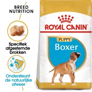 Rasspecifiek hondenvoer voor Boxer pups tot 15 maanden Royal Canin Boxer Puppy is een speciale brok die jouw Boxer pup helpt om goed op te groeien. Zo ondersteunt deze brok de natuurlijke weerstand en spijsvertering. Door het aangepaste eiwitgehalte wordt de ontwikkeling van de spiermassa ook ondersteund. Zo kan jouw pup opgroeien tot een volwassen hond!